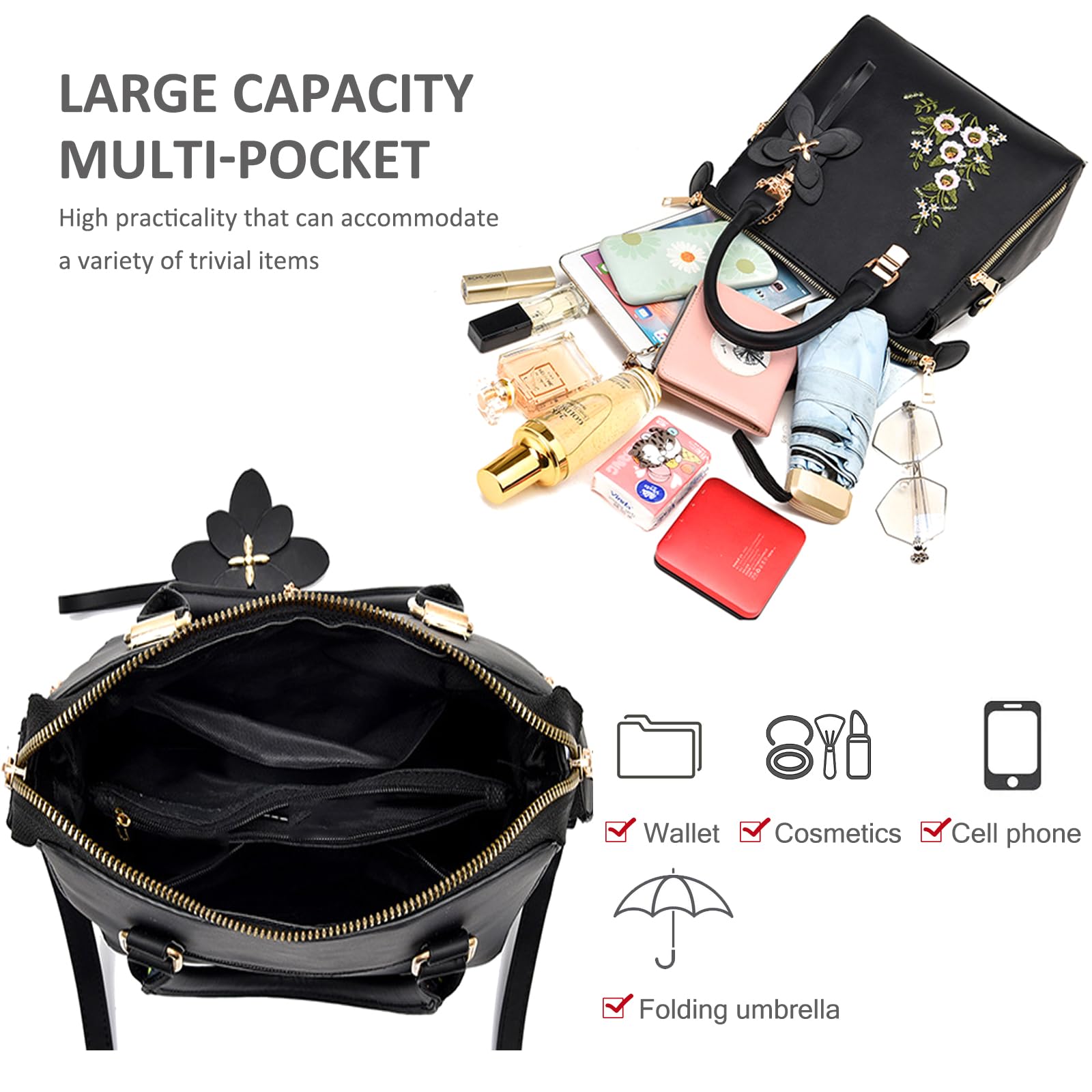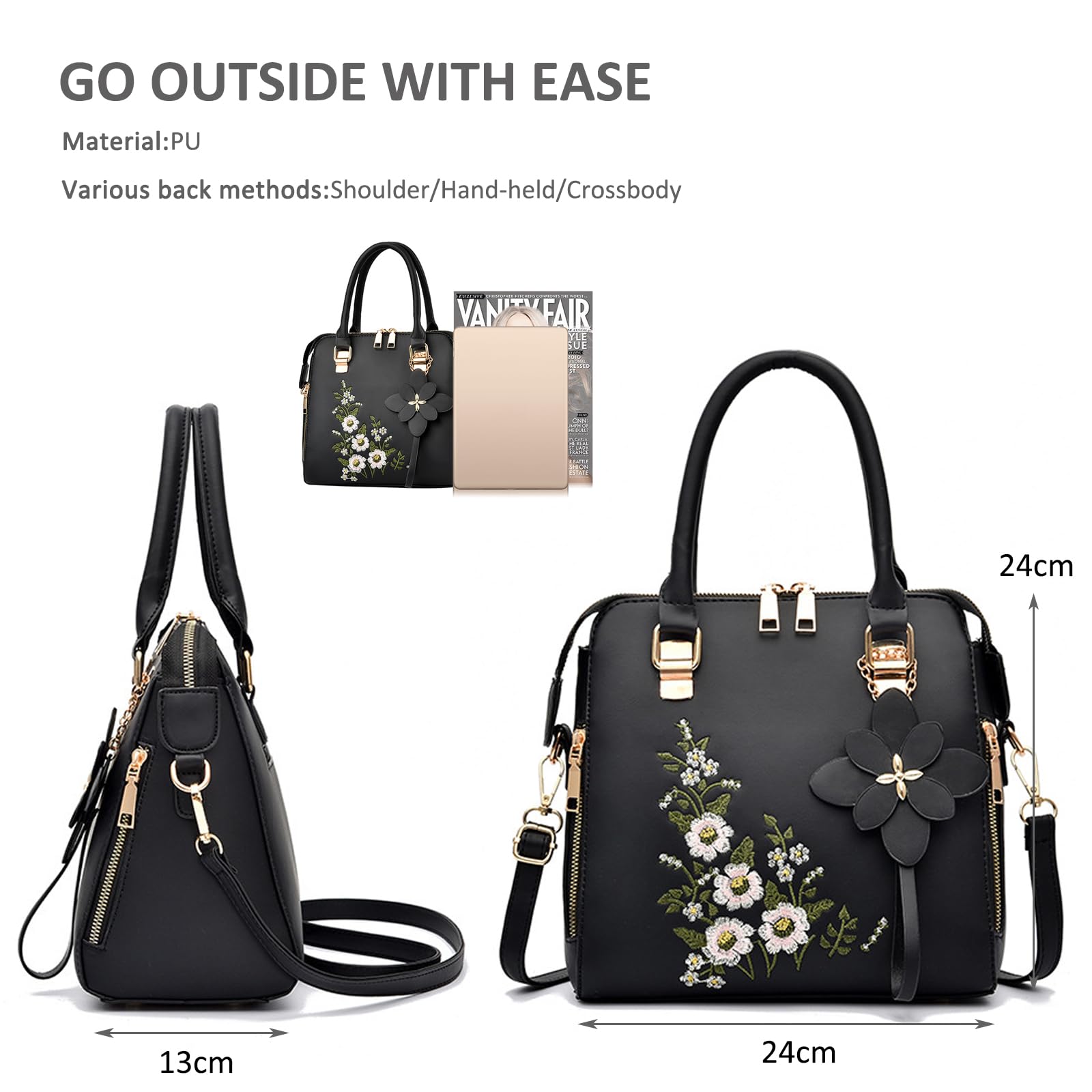 3D floral embroidered handbag