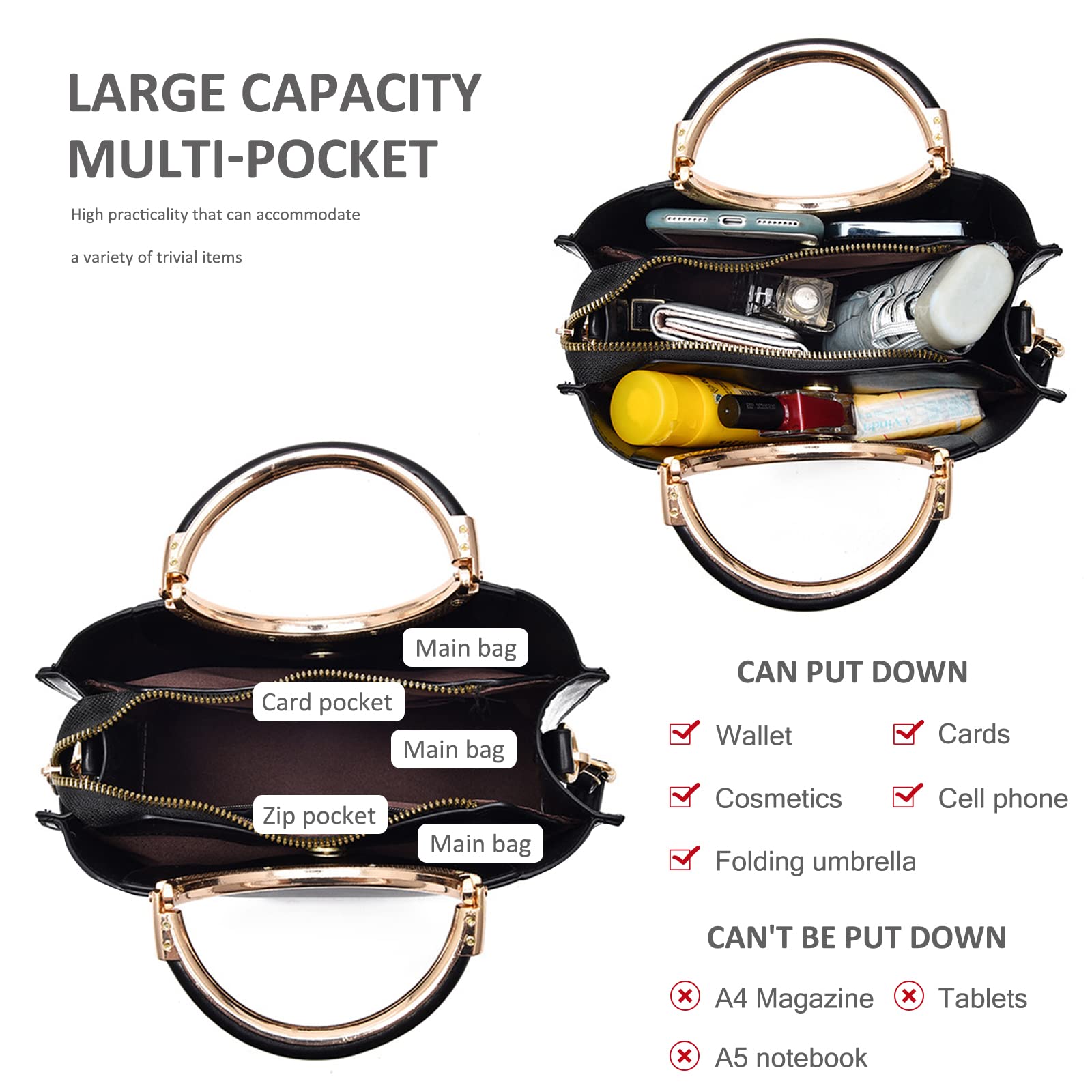 Fits phone, keys, glasses, cosmetics, and small essentials