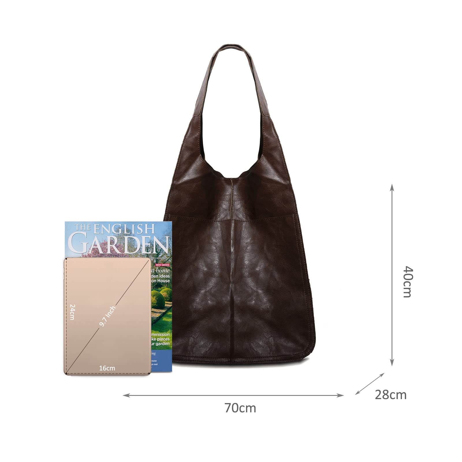 This large tote handbag features a relaxed slouchy silhouette in a deep dark brown tone, giving it a modern, effortless look that works well for both casual and city styling. The soft body design creates a laid-back yet fashionable shape, while the wide shoulder strap provides comfortable carrying throughout the day. Lightweight yet highly practical, this bag is designed for users who need generous storage without sacrificing style. With a size of 70 cm (27.5″) L x 28 cm (11″) W x 40 cm (15.7″) H and a weight of 0.6 kg, it offers impressive capacity for carrying clothes, a laptop, iPad, A4 magazines, and other daily essentials. A stylish and functional choice for commuting, shopping, travel, weekend outings, and everyday use.